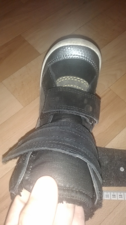 Белая часть подошвы быстро становится серой, может можно как-то отмыть, но я не смогла. Замша затирается и становится белесой. А так прикольные сапожки. Мы 25 носили с 14 см ноги. Сейчас у нас 15,5, поносим ещё немного.