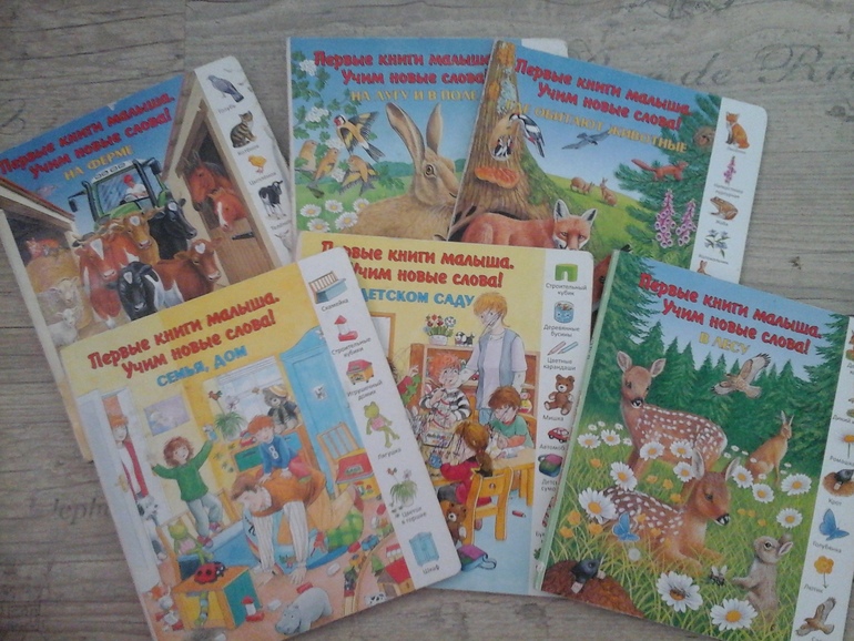Эти книжки просто супер-хит с года и до сих пор, дочке 3 года. Картоные листы, яркие, но в то же время реалистичные рисунки. Цена отличная для таких книг! Очень рекомендую.