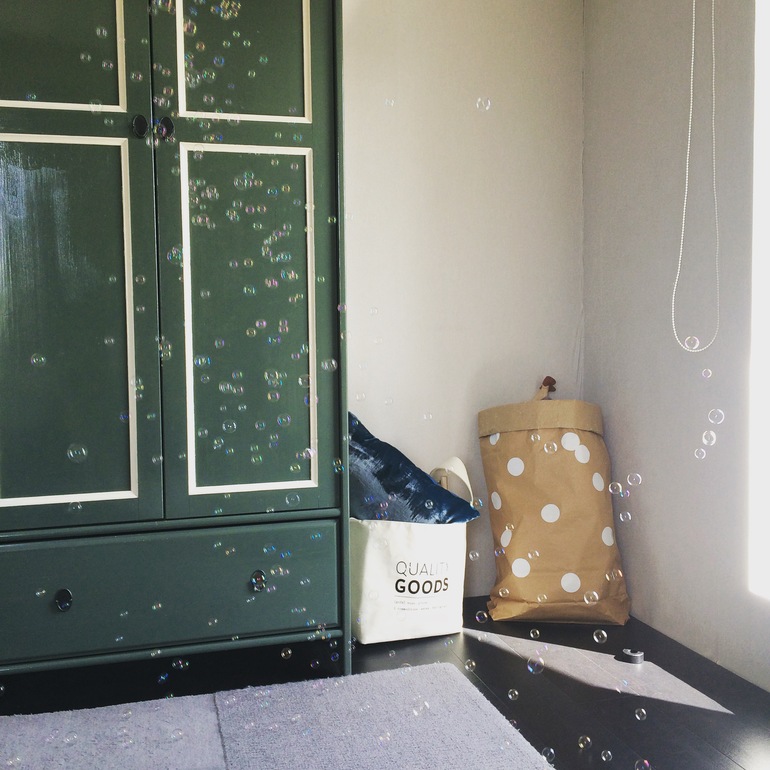 Дома из всей мебели только кровать да комод, тк вся "детская" на балконе умещается