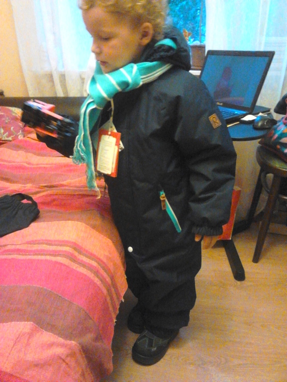 Детская одеждаПомогите, пожалуйста, разобраться с зимней одеждой, замучилась Имеем сейчас комбез Рейма 110 и куртка HM 110. Будучи уверенной,что до комбеза мы не доросли, потратила всю прошлую неделю на поиски чего-то 104, безуспешно. На днях купили обувь, померили, и теперь мне кажется,что и так можно ходить. Посмотрите.