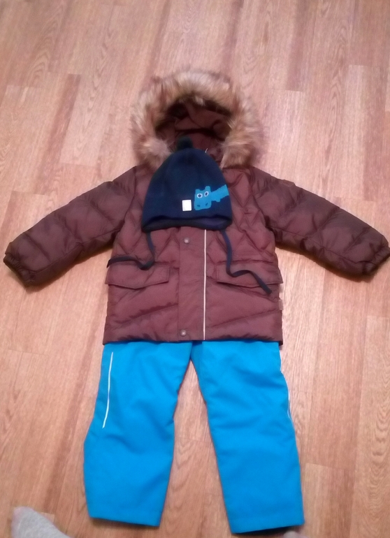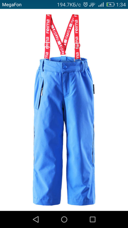 Пуховик , как пишет производитель, с высокой степенью утепления. Под пуховик нужны штаны. Все бы ничего, если бы не цвет пуховика. Под коричневый сложно что-то подобрать. Хочется яркое, голубой, зеленый, оранжевый. Оранжевый присутствует в комбезе уже, зеленый не хочу, а голубой мне нравится. Нашла брюки reima tec...