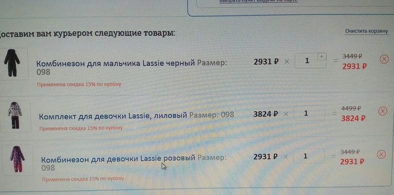 на озоне скидка была на днях (может и щас еще действует) - минус 20%, комбез со спасибо и купоном на 500 вышел около 2700ре