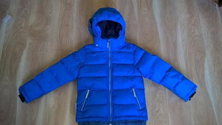 Steen Age - 128 размер, но большемерит. Носили прошлой зимой. Померили и на эту зиму пойдет. Оочень теплая. Остается. С рукавами вроде все ок?