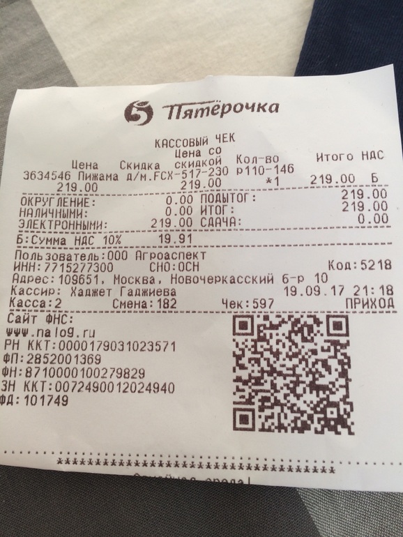 Пятёрочка выручает! Пижама в сад за 219 р.