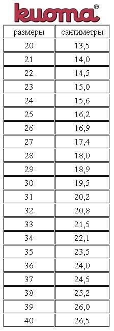 Спасибо. Но как писали внизу, таблица разных лет выпуска отличается. Нам 18 см осень велики, а 19 и подобно