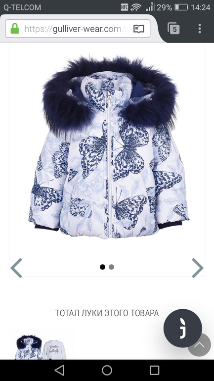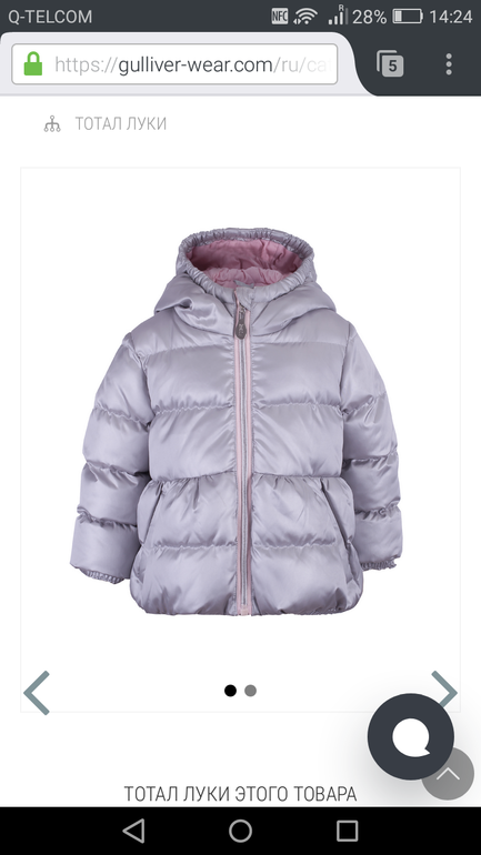 2. Некст, та же дутая куртка на флисе в голубом цвете. У дочки голубые глаза и светлые волосы, было бы хорошо, мне кажется.