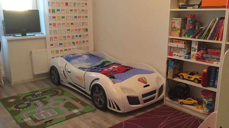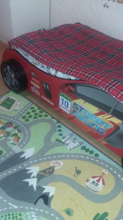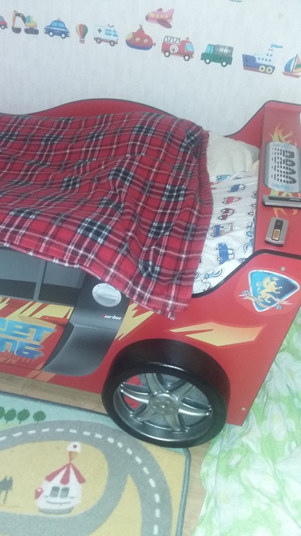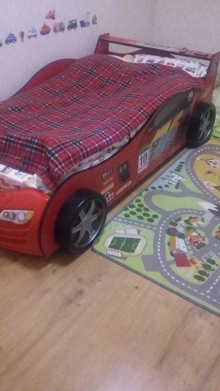 У нас машинка. Решили, что пусть у ребёнка будет детство. У нас другая фирма, правда. Кровать длинная и фары светятся, но не думаю, что это принципиально