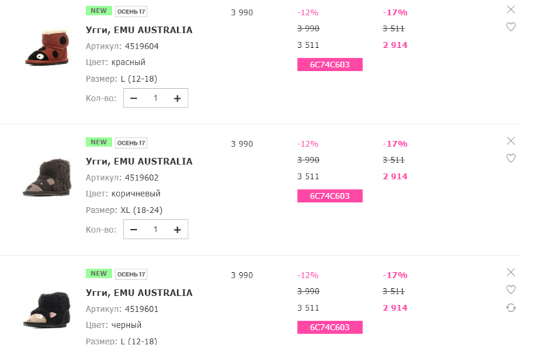 В Оланте малышковые Эму по 2.990 сейчас. Плюс код какой-нить или кто-нить картой скидочной поделится)