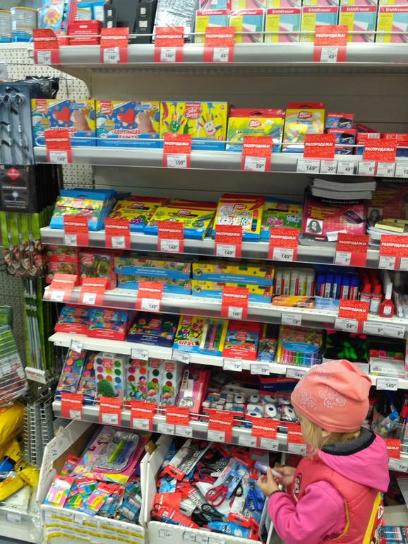 Распродажи. Скидки. Акции.Написано,что распродажа. Я особо цен не знаю,но взяла детям пластилин.