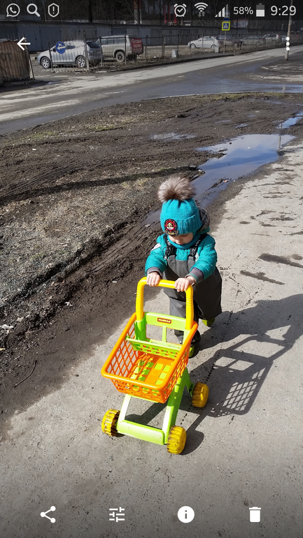 Мое скоро четыре..носится с ней по квартире, "покупки делает". Лёгкая, устойчивая. Много влезает.