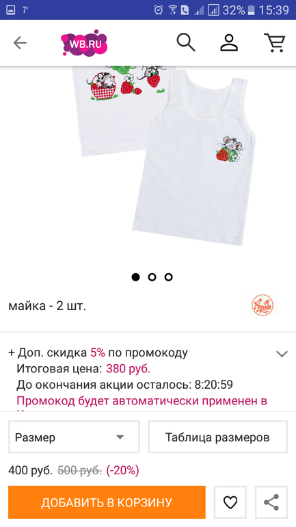 Что касается маечек, мне нравятся. По размерности: дочь 100 см. Рост 104 хорошо. В сад набрала зимой на этот год по 328 р за 2 шт в наборе. Трусики как по мне больше на плотных детишек. У дочки 100 см роста, 18 кг вес, попа имеется, но до сих пор носит трусики толи 86, толи 92 р-р.