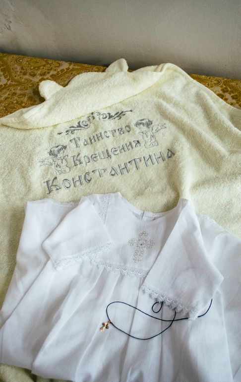 У нас было только большое полотенце и простая белая футболочка вместо крестильной рубашки.