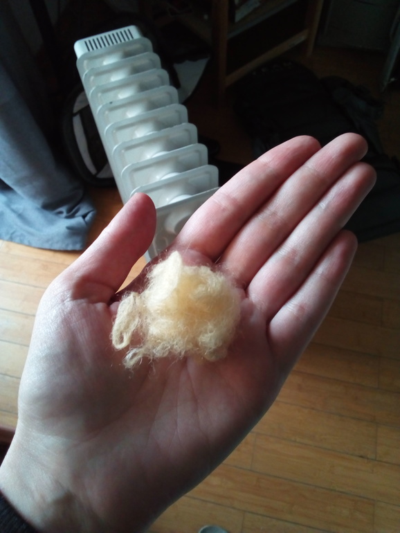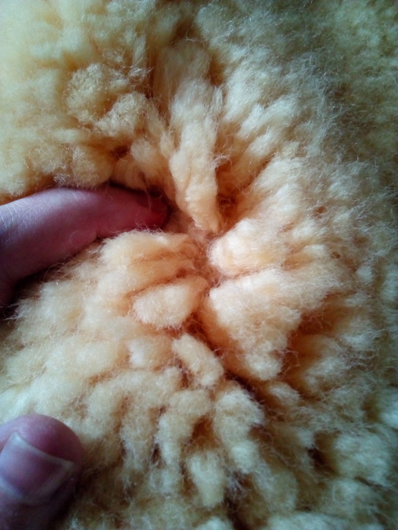 сразу после стирки, пока мех ещё был влажный, Я его разворошила ладонью, чтобы после высыхания он стал пушистым.