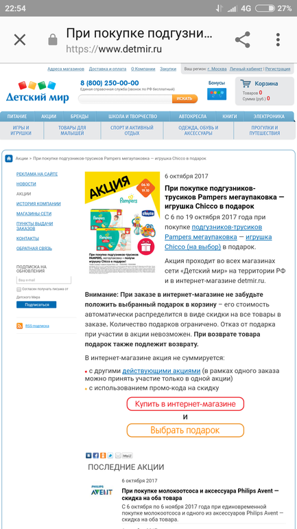 ДМ при покупке памперс игрушка в подарок