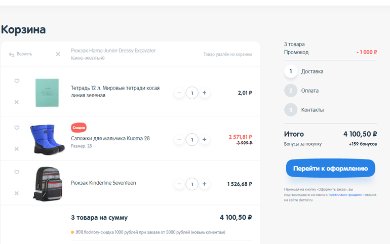 ∙ Cкидка по промо-коду не суммируется с акциями на сайте. При единовременном применении