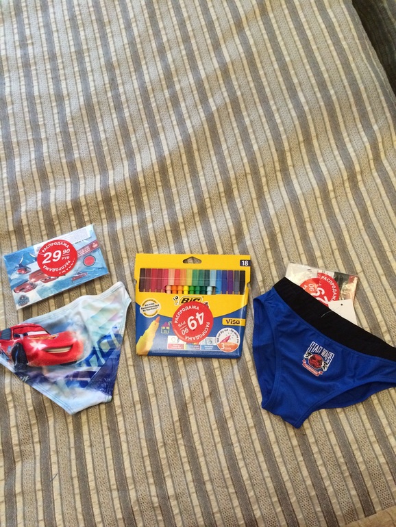 Распродажи. Скидки. Акции.Девочки у кого есть магазин да .советую сходить :плавки на мальчика с тачками и какие то еще .производство Германия по 29,9 и фломастеры BiC 19 цветов по 49,9