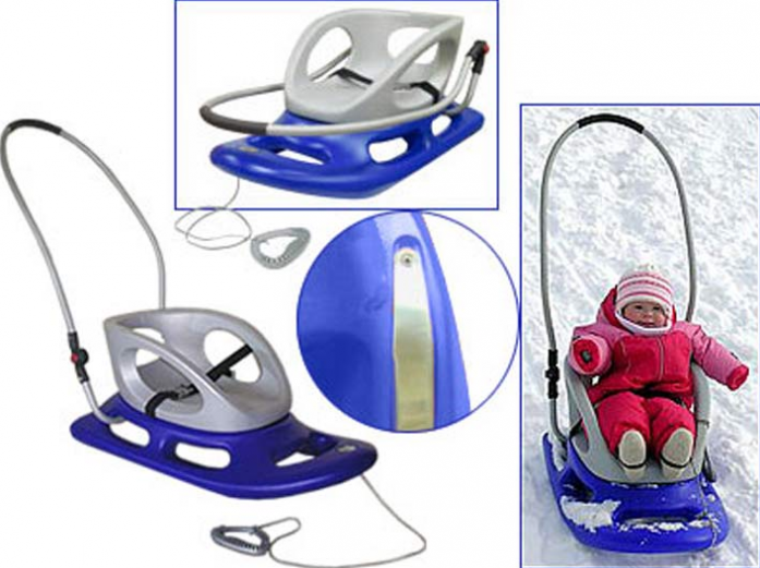 Берите снегокат со спинкой, с полутора лет многие наши друзья ездили зимой и катались с родителями с горки!