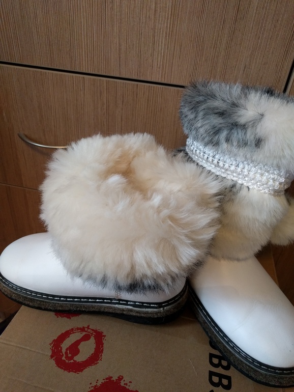 У моей младшей дочери такие были(сейчас продаю), майорские унты. У нас у всей семьи такие, внутри натуральная овчина. Снаружи мех искусственный, но кожа натуральная. Я в морозы из них не вылезаю, я очень мерзлячая.