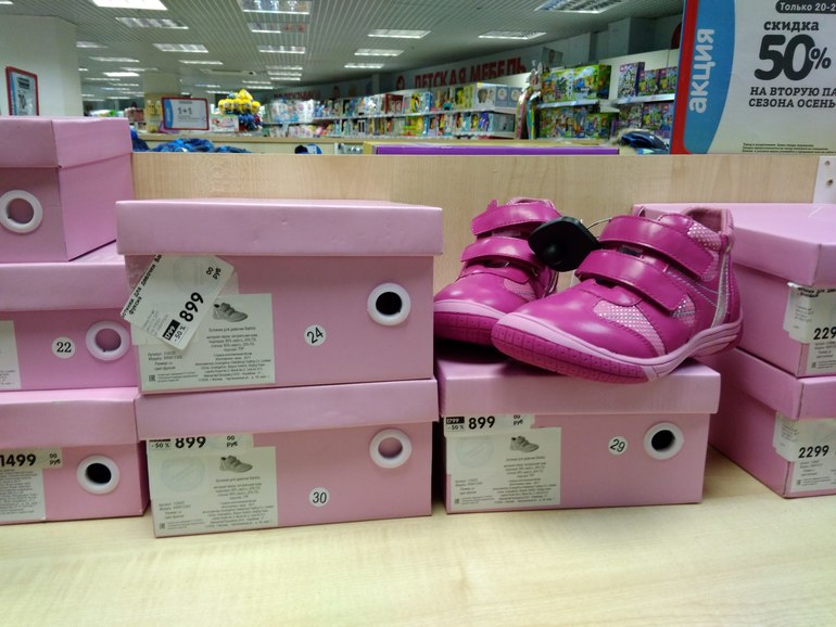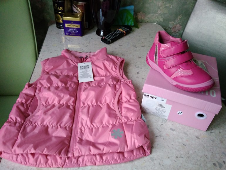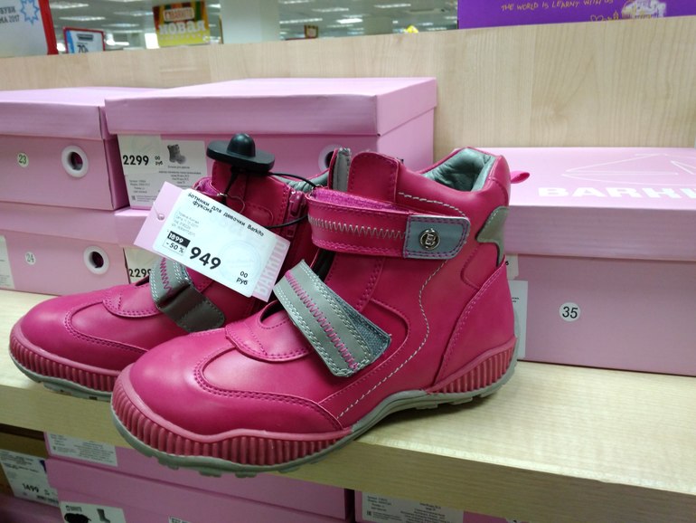 Только хвасты! (одежда и обувь)Была сегодня в ТЦ Перловский. Выкупила девочке с ББ куртку и купила дочке на весну-осень жилетку р.104 за 449руб. и ботинки р.27 за 899руб.(кожзам, хотя написано натур.кожа, внутри шерсть, нос завышен - не будут сильно обдираться). Дочке удобно. Сделала фото оставшихся размеров ботинок.