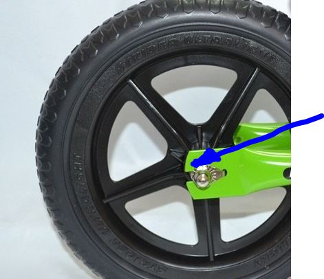 Если ребенок нацелен на прыжки, лучше сразу брать на надувных колесах или хотя бы такой, на который эти колеса можно было без проблем поставить, На розовом беговеле просто круглое отверстие, накачиваемое колесо туда не встанет. На зеленом - прорезь. Можно поставить надувное колесо.