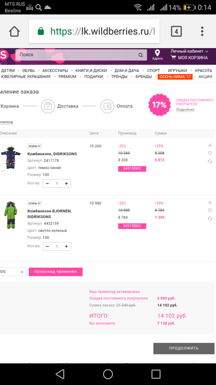 если кому нужно,могу помочь с заказом на Вайлдберрис при условии 100% выкупа.Комбинезон Дидриксонс синий по цене со скидками получается 6566. Личная 20%