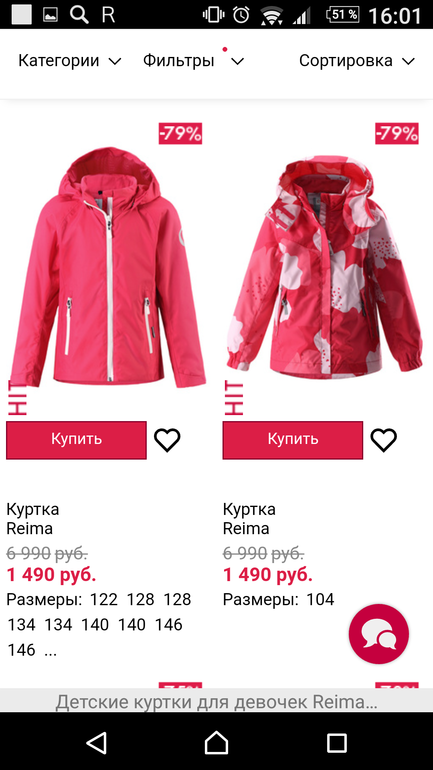 С промокодом для мальчиков 1600 выходят ветровки, на девочек конечно выгоднее