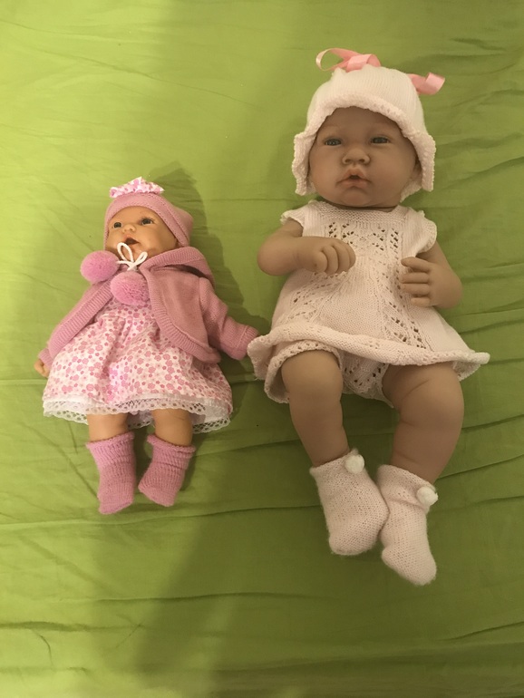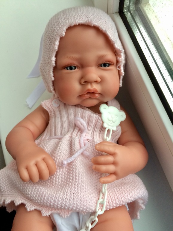 это самая любимая, 55 см мягконабивная. Покупали на новый год в три года, больше всего она играет именно этой куклой. Виниловые тяжелые, их особо не потаскаешь и купали мы их всего пару раз. А мягконабивная легкая, ее очень удобно носить на руках, можно много одежды накупить на новорожденного и ей все это подойдет. В общем, если бы выбирала одну, ,купила бы только большую