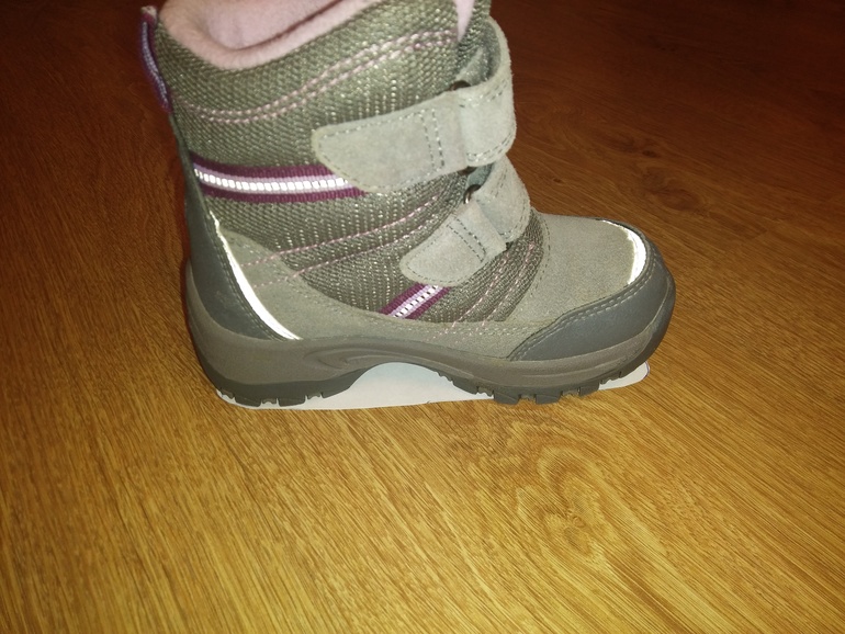 На фото ботиночки 25 размера. Не могу понять, нам 26 или 27 нужно? Носить будем всю зиму, плюс март ещё точно. Стопа 16,3 примерно. Стельку вытащила - точно по размеру ноги, то есть за улыбающимся смайликом.