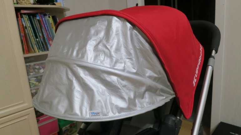 Чуть не забыла про капюшон и смотровое окошко на магнитах. На первый взгляд он показался мне небольшим, но потом я мнение поменяла: там есть дополнительный УФ-козырек, закрывающий малыша при ярком солнце.