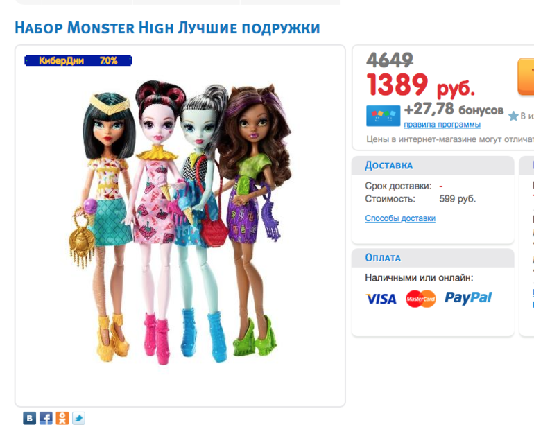 я их еще раньше тоже в дет мире по такой цене брала. девочки они вроде на гудс дешевле выходит. и еще обратите внимание, что у них только ноги на шарнирах. а руки нет.