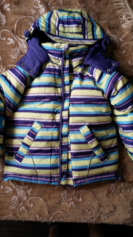 Я бы что-нить фиолетовое поискала, под цвет полосочек на пуховике. Однотонное. Или желтое. Голубое тоже можно (первый вариант шлем), но немного оттенок не подходит...В общем своему искала бы фиолетовое)