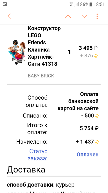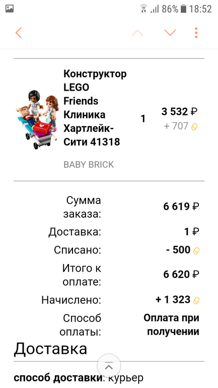 Заказала в понедельник Лего , прошла скидка 900р приветственные бонусы- сегодня среда - Лего привези в 15ч. Из Тоя