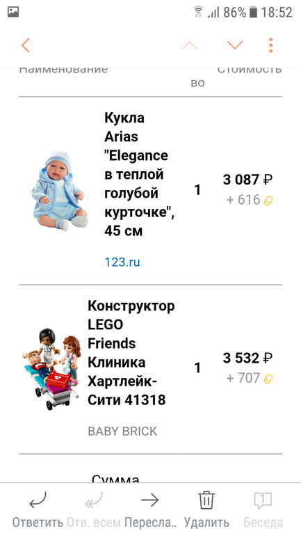 Заказ подорожал на 1000 р.,утром кукла на сайте стоила на 1000 р. дешевле и контруктор подрос))))