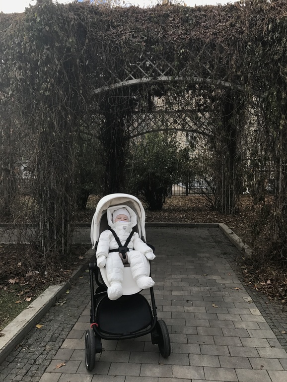 Дочке в прошлом ноябре был год. Гуляли в коляске с меховым конвертом Вомар, комбез 180гр Лассие и пинетки Рейма зиянии около 200гр. Под комбез флисовая поддева, а на ноги шерстяные носки под пинетки. Дочка не мёрзла.