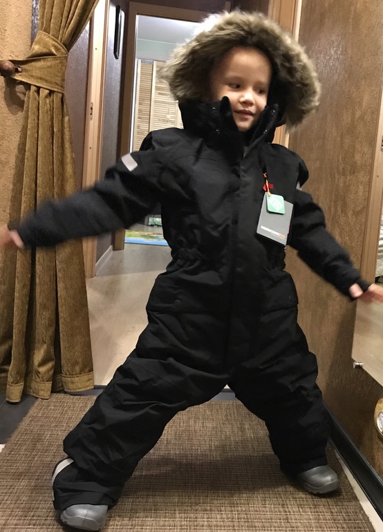 Ну так вы с распущены рукавом попросите его руки вверх поднять. Эти припуски не на вырост, а на свободу движений. И ещё вопрос а что под комбезом?)