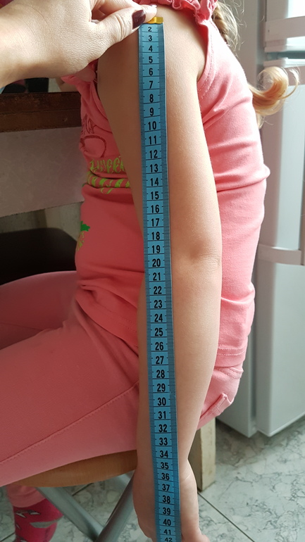 Плечи и даже горловина у всех разные. А это все влияет на длину рукава когда на ребёнке.Могу замерить от манжета до манжета 110 бьернен. Через плечи.