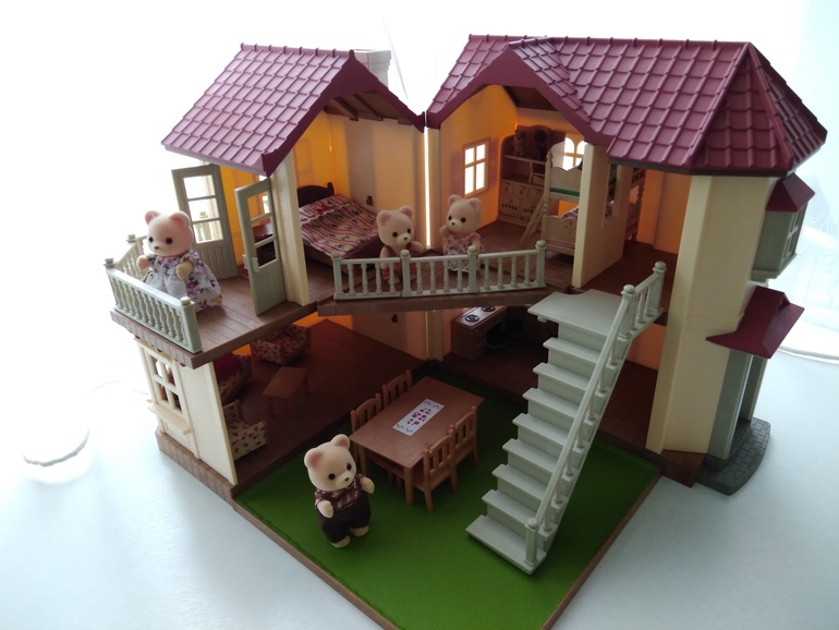 У нас большой дом со светом. Купили туда мебель и семью мармеладных медведей. Дочку не оторвать от них. Все мелкие детали убрала пока чтоб сын не съел. Качество очень хорошее. И сама иногда играю)))