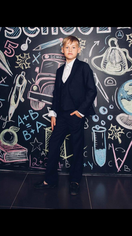 Вот тут 2 класс, 128 рост костюм. Брюки были классические, но в талии узенькие