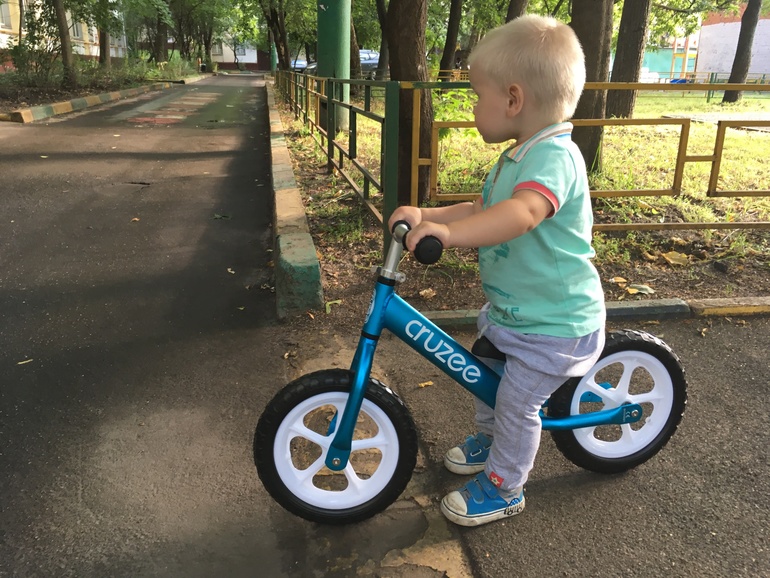 Обратить внимание на габариты ребенка, а именно на длину ног, потому что в 2 года, если ребенок не рослый не всякий беговел подойдет.