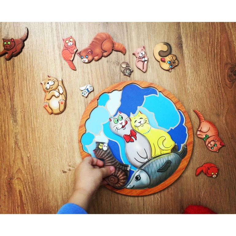 🐳С 2 лет - level up. И я по совету очень хорошего человека😉❤️ приобретаю пазл с котиками. Я бы сама такой и не купила никогда, потому что на мой взгляд он очень сложный для двухлетки. Чтобы сложить его нужно придерживать детали, нужна очень развитая моторика.