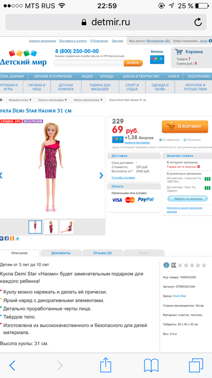 Спасибо за информацию! Сегодня зашла в магазин. На сайте видела, что в нем куклы были в наличии, но не нашла их среди игрушек. Спросила у продавца, оказалось, что куколки были еще на складе (не успели выставить), пока продавец несла 3 куклы (на складе в данном магазине больше не оказалось), одну успели перехватить по пути, а мне как раз нужны были 2)) Повезло) Очень милые куколки, понравились!