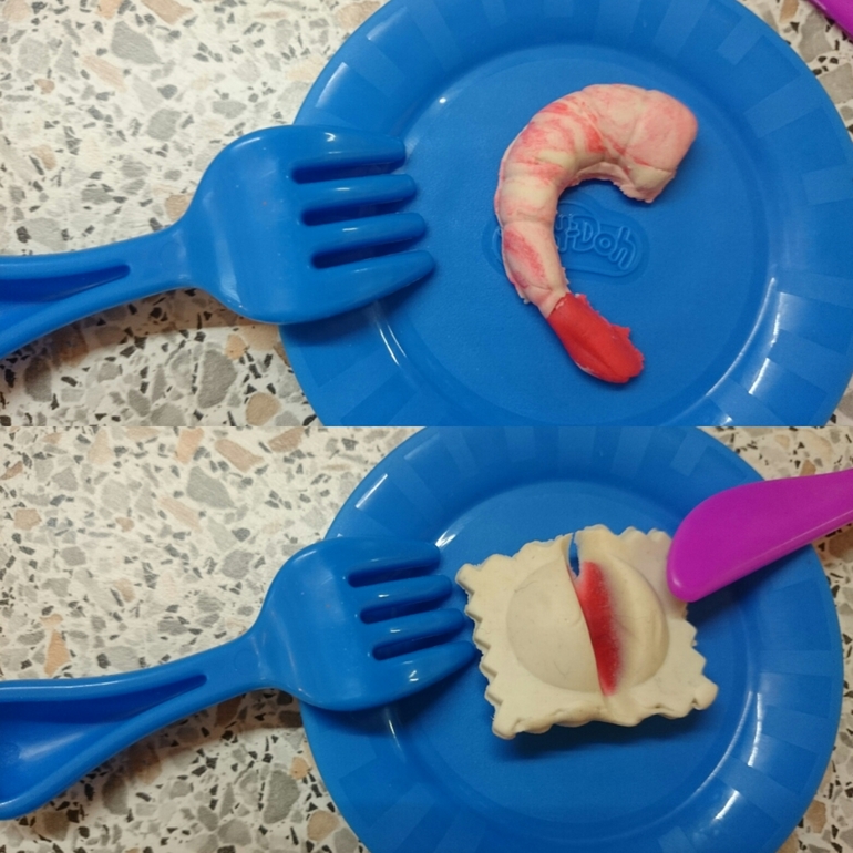 Крутая креветка!! Тоже хочу такой наьор, себе))) У вас тесто в наборе не очень жидкое? Я покупала другой набор (с животными) и что то тесто показалось слишком мягким. Обычное lori пожестче чуть чуть, следовательно как то комфортнее для рук.