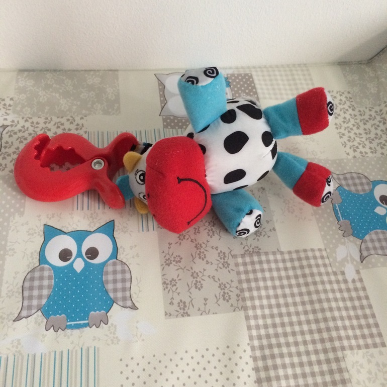 Нам ещё в роддоме подарили корову Тини лав. Вот она у нас самая любимая. Висела раньше только в коляске. На прогулке почти с самого Рождения сынок не засыпал сразу, в смотрел на корову. Сейчас висит на кроватке с левой стороны, так как на левую сторону менее охотно переворачивается и только к своей любимой корове поворачивается и тянется