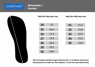 - Детские зимние сапоги Jonathan за 2376 р. вместо 3090 р. Размеры:24-35. Детские сапоги Джонатан выполнены из водооталкивающего материала. - водонепроницаемый материал - не содержит вредных ПФС - внутри вставка из 50% шерсти - дополнительная возможность утяжки голенища - не скользящая подошва - светоотражающие детали - двойной шов, на отражающей ленте не является водонепроницаемым