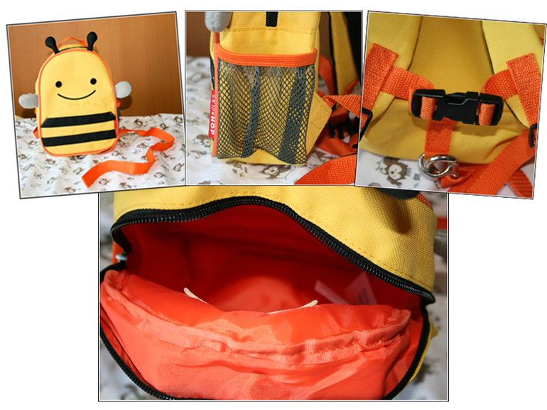 Маленький рюкзак - это просто рюкзачок с поводком, в нем 1 большой карман и сбоку сеточкой