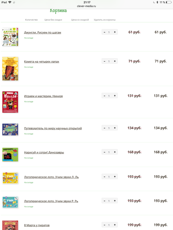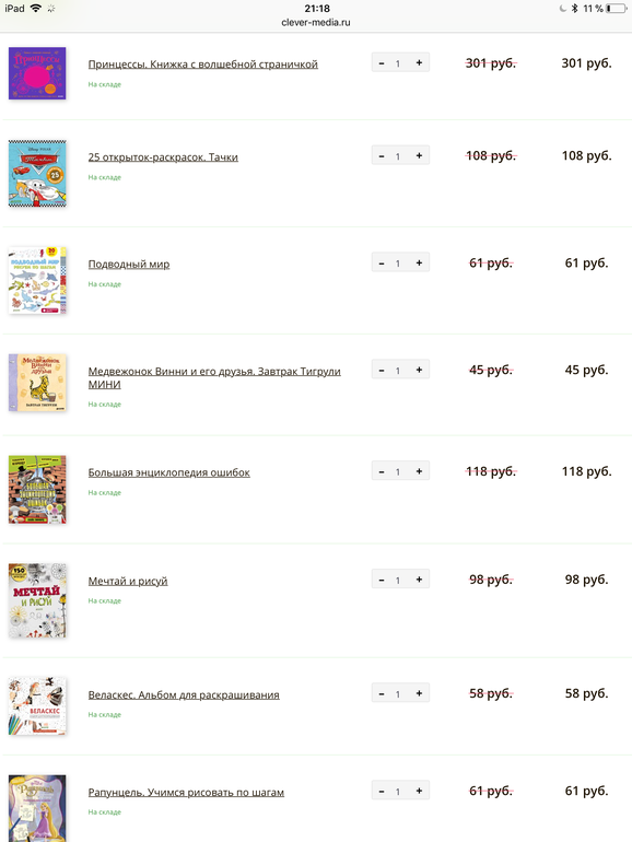 Недавно был шведский стол у них 2500 руб за 15 книг. То есть 166 руб за любую книжку из подборки. Было оч выгодно. Цена моей корзины вместо 7590 руб была 2500 руб -)))
