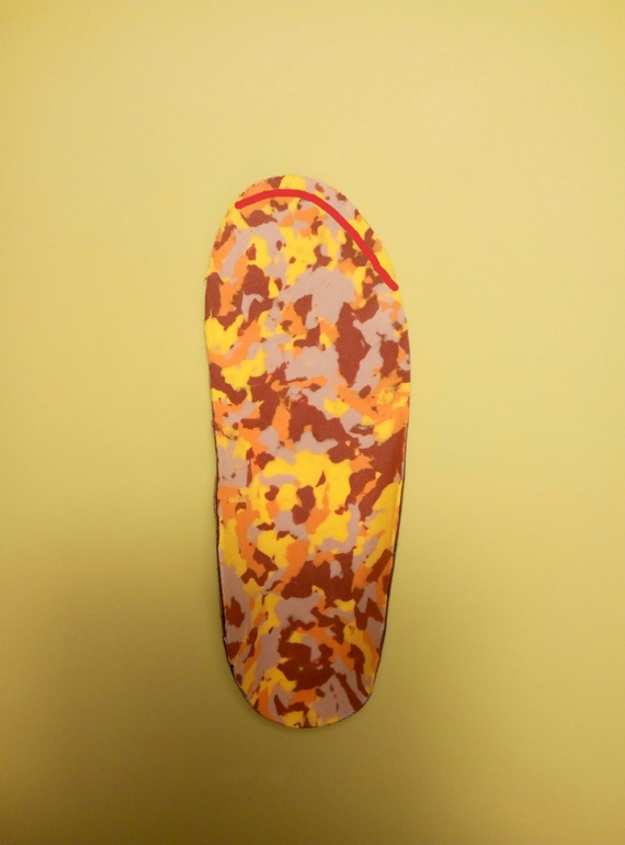 На фото красным обозначил как примерно идет нога у ребенка по стельке.