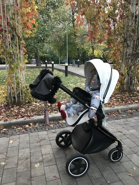 Ну и еще забавно, что мы выяснили, что кожаная коляска теплее тканевой. При одной и той же погоде и одежде, в элите руки-ноги мерзнут, а в кожаной нет.