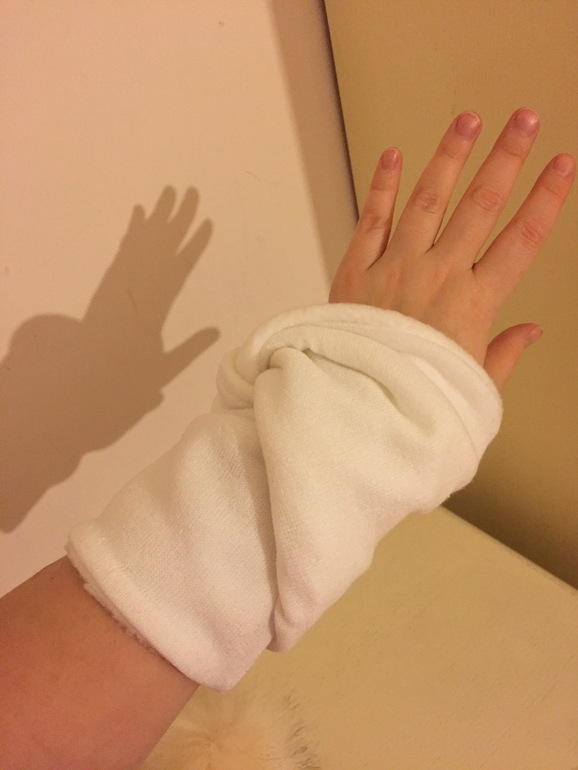 Снуд ткань не тянетесь , наматывается только на руку, получается в два оборота не получится, только под воротник