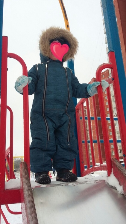 А я не заметила огромной большемерности. Я бы 92 размер взяла. Кнопочки на манжетах помогут нивелировать длину рукавов, штанины на ботинках плотно, хорошо держатся, не будут волочиться по земле. А если малыш скакнет в росте зимой?